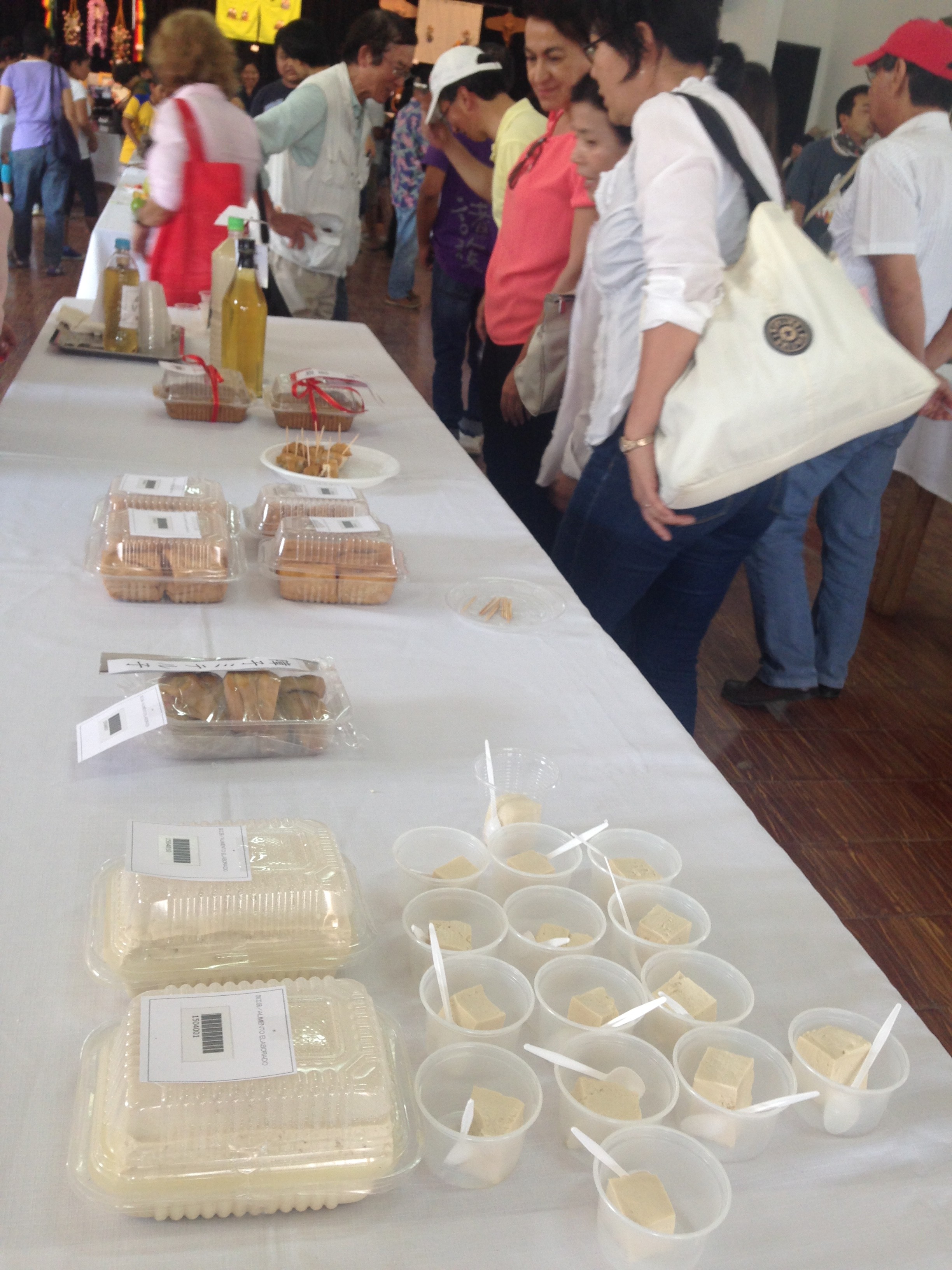 夕方からは展示されていたものの販売会です。たくさんの人がバーゲンセールの時のようにレジに並んでいました。レジの前に並んでいたボリビア人の女性が、酢とも麹とも思える中身の瓶を抱えていたので、何を買うの?と聞いてみたら、わからない、と答えました。瓶を見てみると「甘酒」と書いてありました。甘いお米のお酒だよ、と説明するととても嬉しそうにしていました。ボリビア人も日本の未知なる食文化に興味津々のようです。